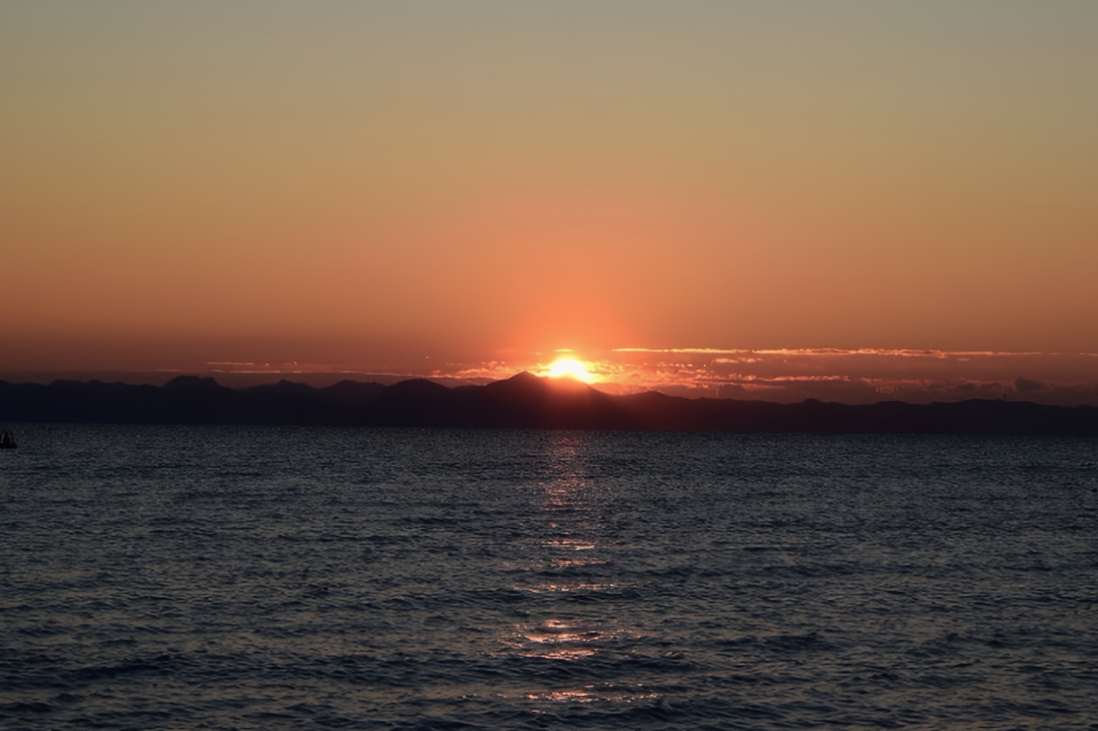 三浦海岸は、海水浴のビーチとして知られていますが、お正月には初日の出が美しく見えることでも有名で、たき火や伝統的なタイコの音と共に日が昇るのを迎えます。